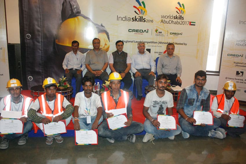 To increase the skills of skilled labour working for Brick laying, Wall and floor tiling and upgrade them for World Skills Competition to be held in Abu Dhabi, Regional Competition organized by CREDAI & National Skills Development Council (NSDC) in association with Kushal and RAGC. It was start with flag off ceremony by Shri Dipak Patel, President GIHED. At inaugural session Shri Jaxay Shah elect President, Shri Shekhar Patel, Hon. Treasurer, Shri Sharif Memon, President CREDAI Gujarat, Shri Dipak Patel President CREDAI Ahmedabad GIHED etc. motivate the participants to improve their skills and upgrade themselves for better opportunities. Session for usage of Safety equipment and its benefits followed by Prize distribution ceremony performed by Dr. Anilbhai Patel, Chairman, Building & Other Construction Workers Welfare Board, Govt of Gujarat, Shri Jitendrabhai Thakkar, Chairman Skilling, CREDAI.