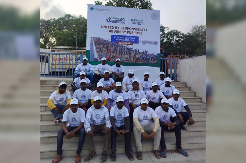 On the occasion of World Environment Day, the Sabarmati Cleaning Maha Abhiyan was successfully conducted along the eastern bank of the Sabarmati River, near Atal Ghat (between Nehru Bridge and Atal Bridge). This major environmental initiative was organized by CREDAI Ahmedabad GIHED, in partnership with the Ahmedabad Municipal Corporation (AMC) and Sabarmati Riverfront Development Corporation Ltd. (SRFDCL).